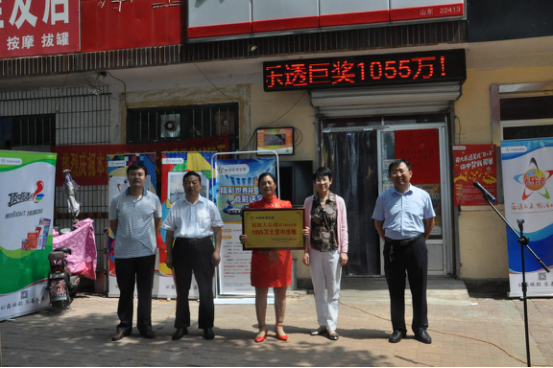 6月9日,体彩大乐透第18066期开奖, 山东中出的1000万元头奖喜落临沂费县22413号体彩投注站。中奖彩票为一张8+3复式票,投入336元,除中出1注1000万元一等奖之外,还收获一连串小奖,单票擒奖1055万元。 6月12日,临沂体彩在大奖中出站点举行“超级大乐透第18066期1055万大奖中出地”授牌仪式。